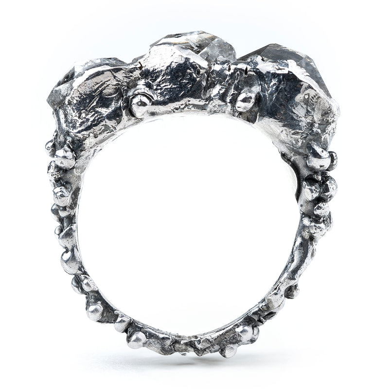 Three Stones Herkimer Diamond Band Ring - One of a Kind -