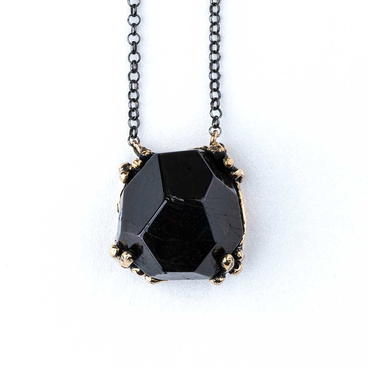 MATERIALS: Oxidized sterling silver chain, Druse of Garnet, and nickel-free bronze.