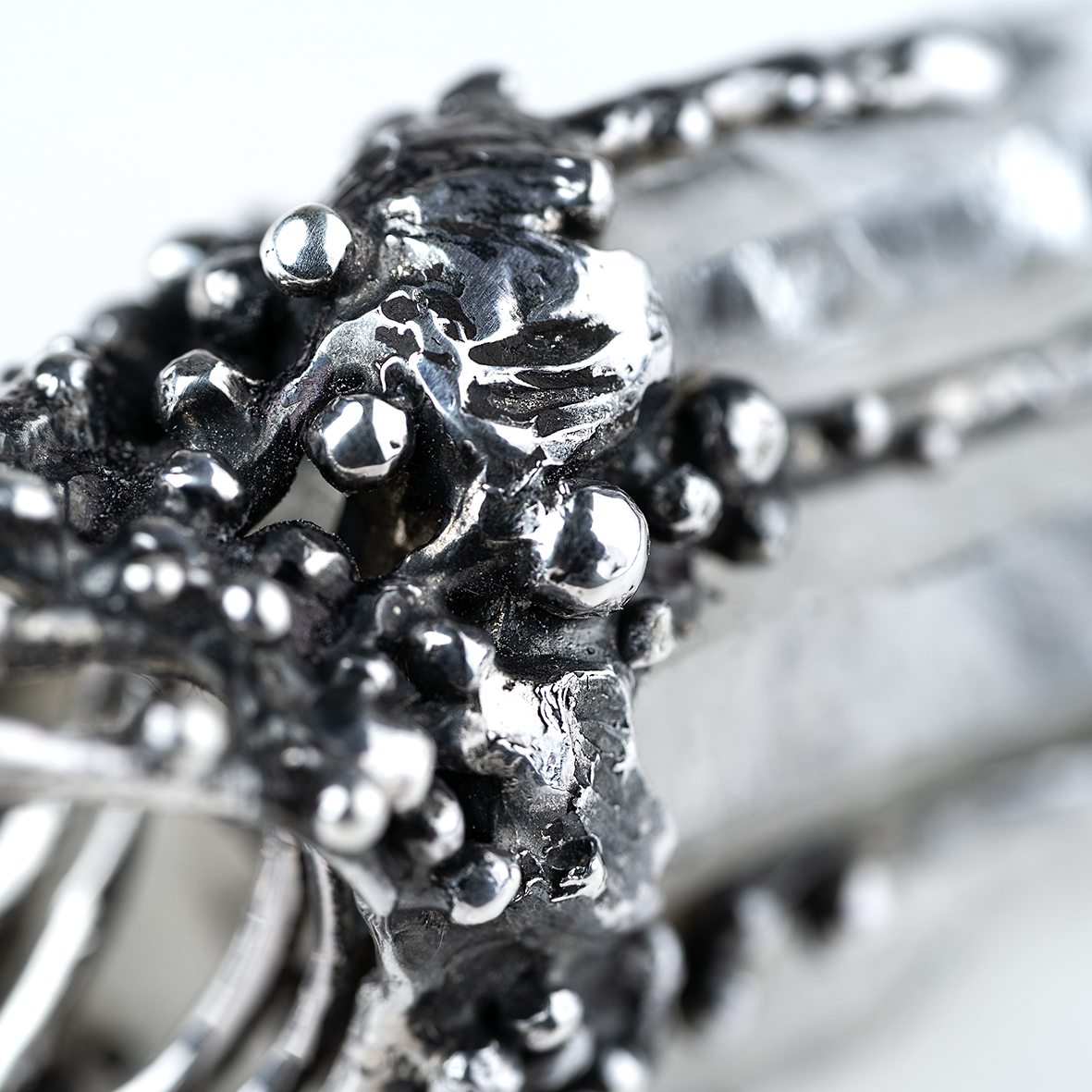 MATERIALS AND FINISHING: oxidized sterling silver and clear quartz.