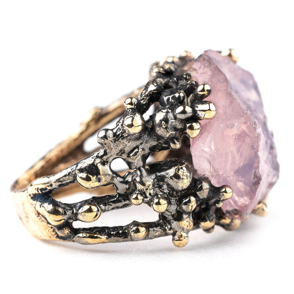 NAME: Every Giardinoblu piece of jewelry is a living creature. This Rose Quartz ring is Aylen which means "glad" or "limpid" in Mapuche (Native American tribe) language.
