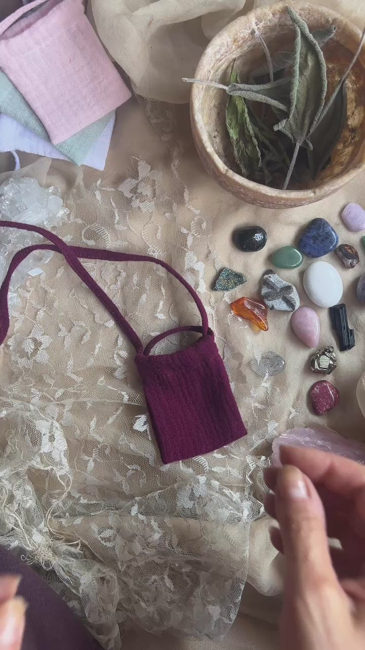 Our handmade crystal pouches gently hold the energy of your stones, herbs, and small treasures near your heart, bringing you ease and connection, whether for support, balance, or as a gently reminds you of the beauty of your personal journey.