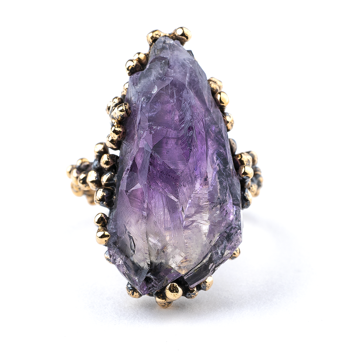 MATERIALS AND FINISHING: nickel-free bronze and Raw Amethyst tip.