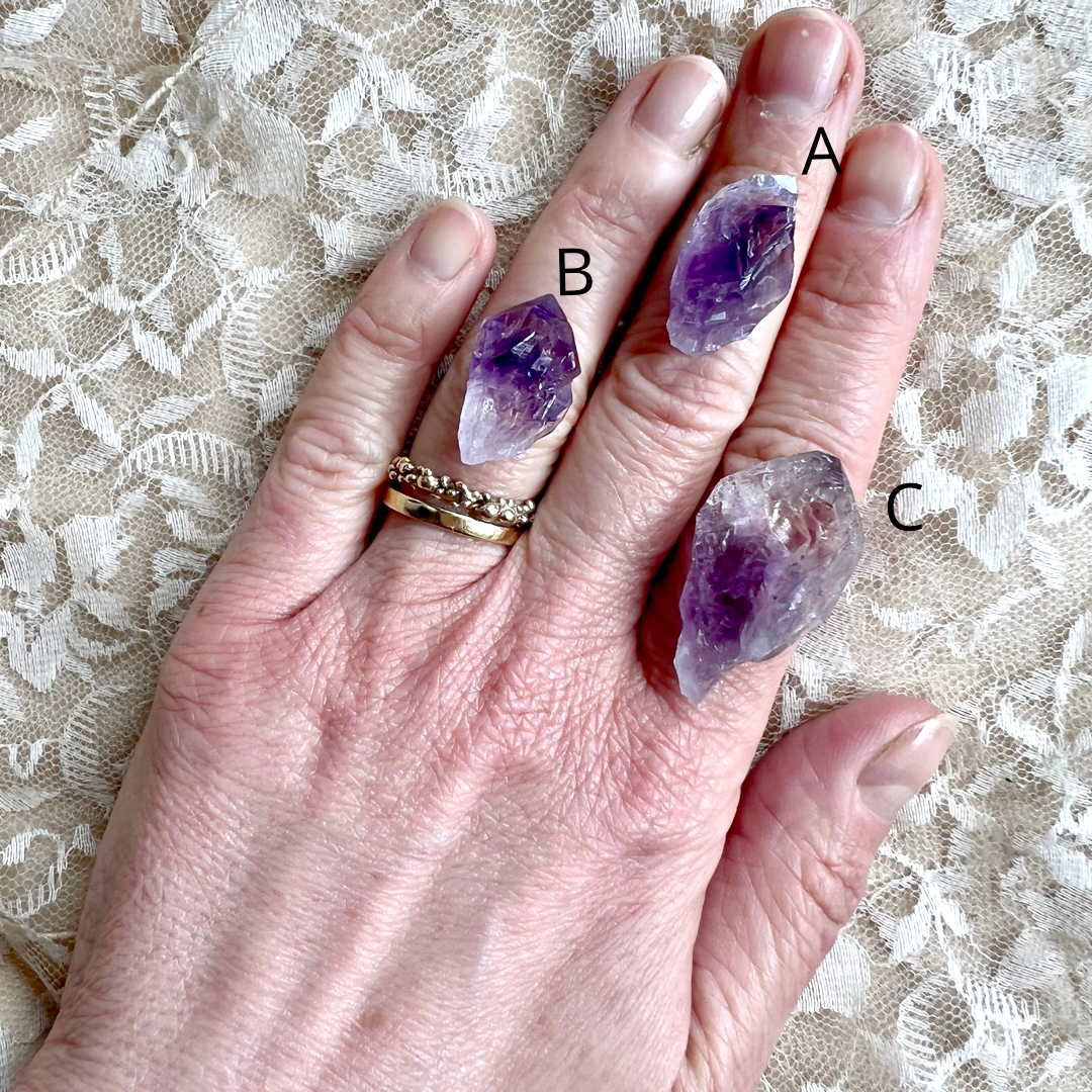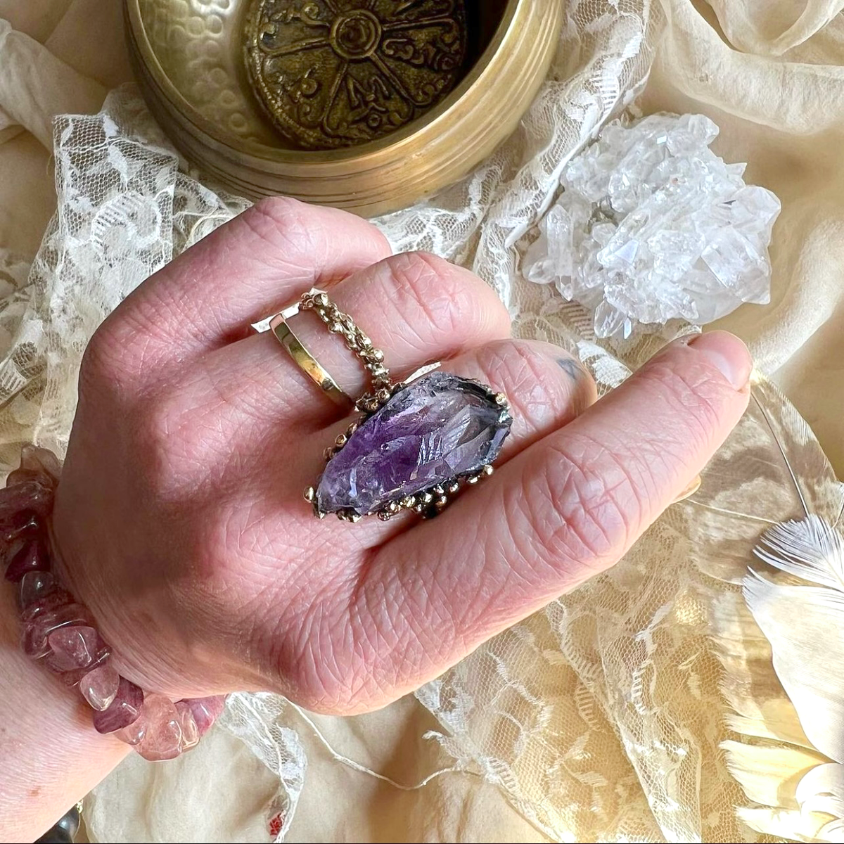 Our Amethyst Tip ring is a multifaceted Crystal Healing Jewel that assists you in promoting balance, addressing emotional and spiritual aspects and offers support when feelings of tension, anxiety, stress, or a lack of control arise.