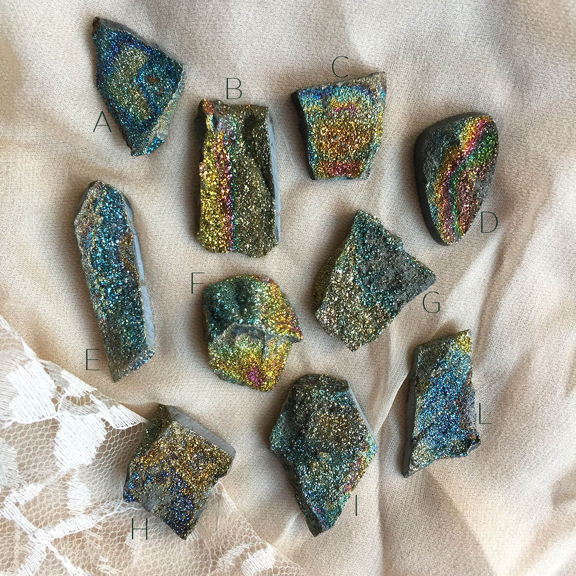• Rainbow Pyrite helps you to manifest what you need and bring your projects into reality. It's excellent support, especially if you tend to procrastinate or hesitate to take action.