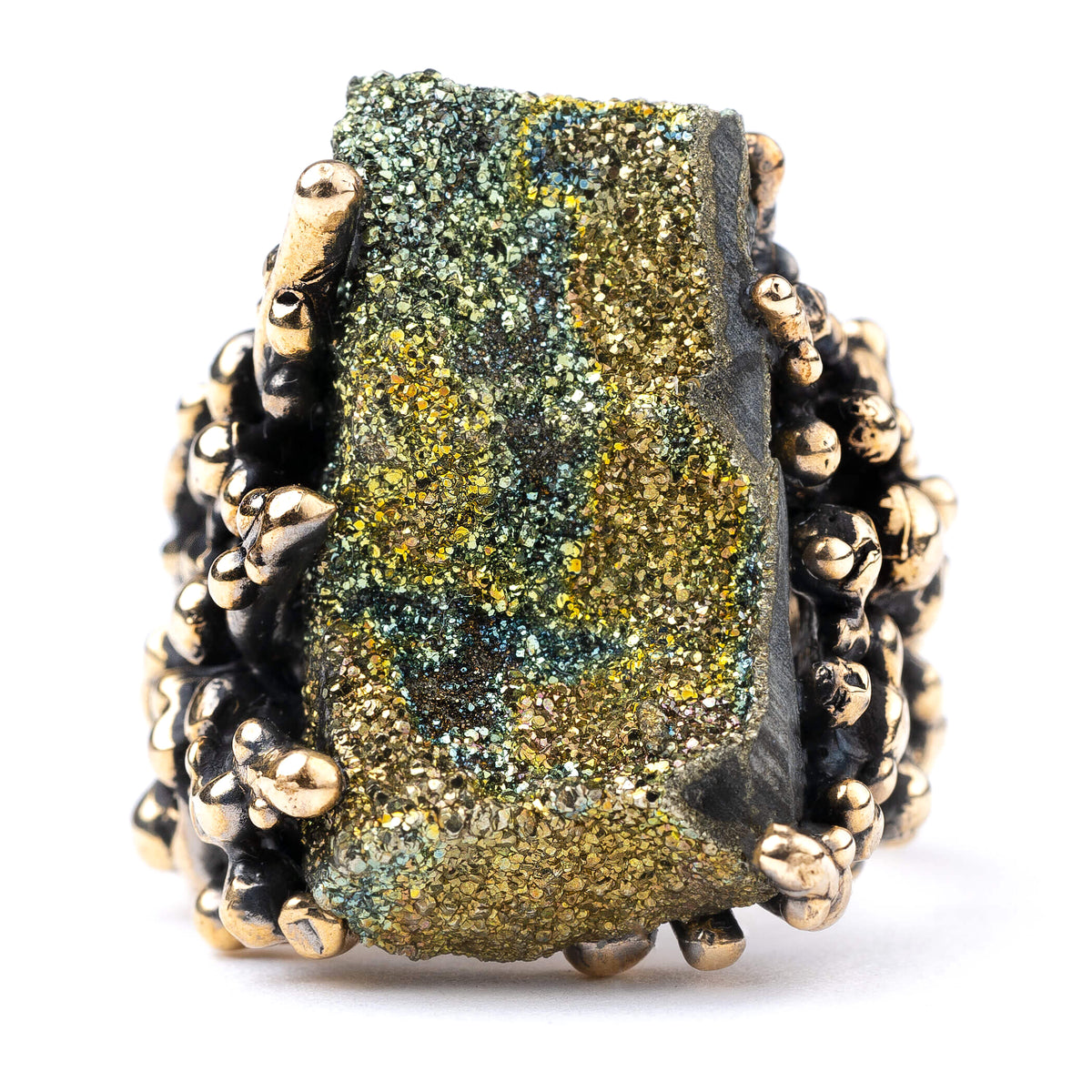 • Rainbow Pyrite ring activates the nourishing energies of the body, to boost action and vitality, encouraging you to overcome fears and self-sabotaging thoughts.