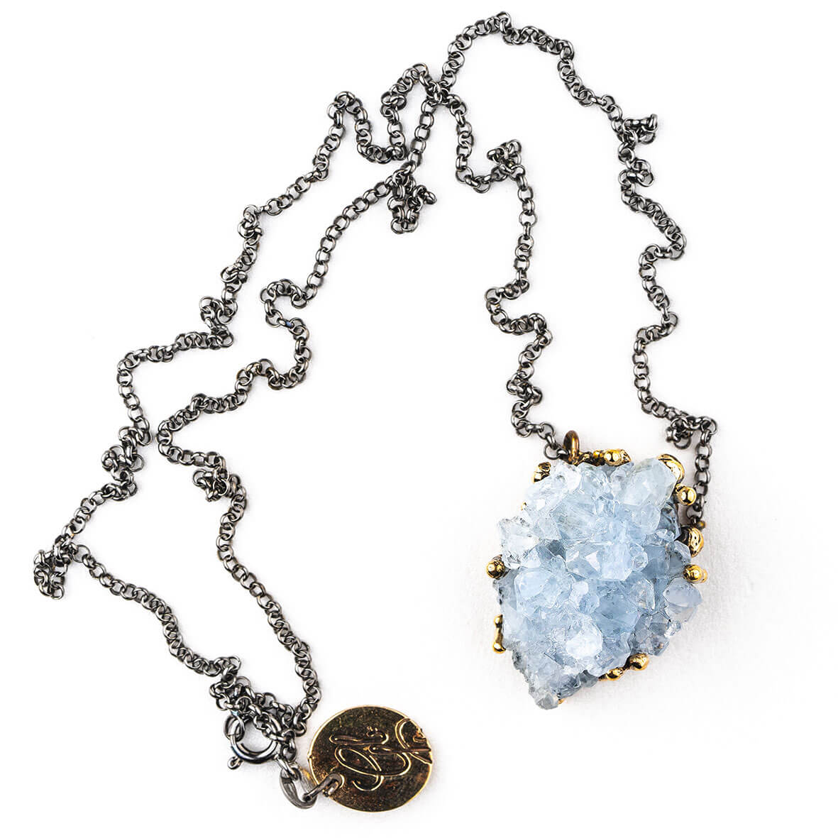 Celestine Druze necklace helps to express your truth with spontaneity keeping away shyness and fear.