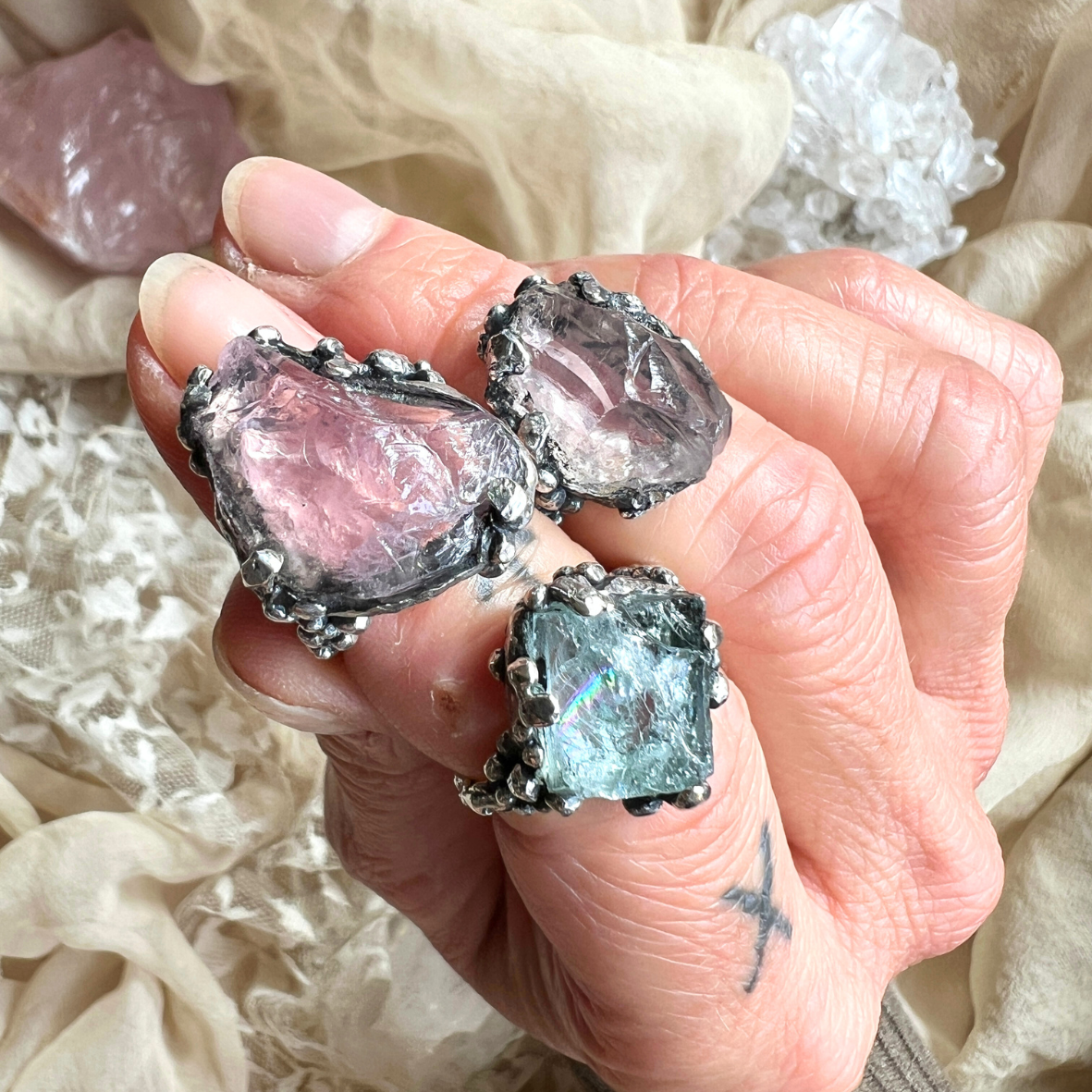 NAME: Every Giardinoblu piece of jewelry is a living creature. This Rose Quartz ring is Aylen, which means "glad" or "limpid" in Mapuche (Native American tribe).